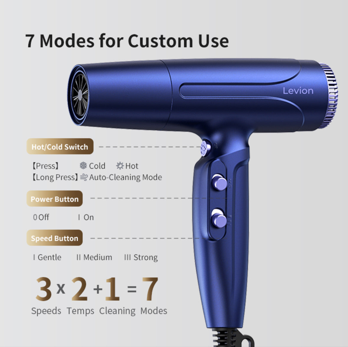 Levion, dahili AutoClean özelliği sayesinde son derece kolay bakım için tasarlanmıştır. Soğuk hava tuşuna sadece 5 saniye basılı tuttuğunda, hava akışı tersine döner ve filtrede biriken toz ile kalıntıları dışarı atar. Böylece ekstra zahmete girmeden saç kurutma makinen her zaman en iyi performansını korur.