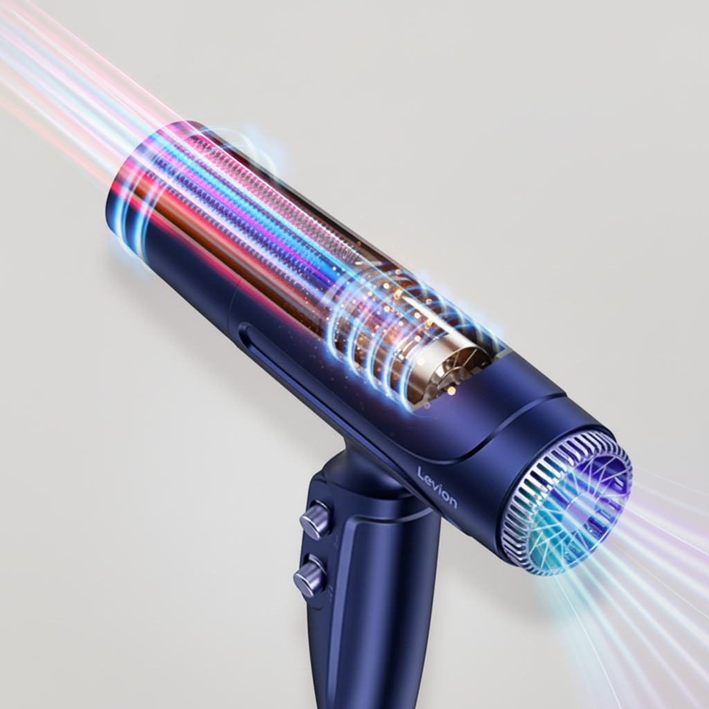 Levion UltraFlow, profesyonel salon tipi saç kurutma makinelerinde kullanılan teknolojiyle aynı olan, 110.000 RPM hızında dönen yüksek hızlı fırçasız DC motor ile donatılmıştır.